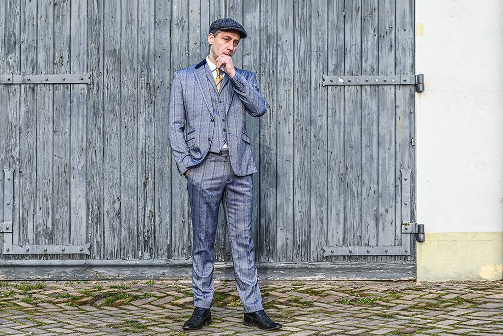 Get yourself a decent suit, we’re going to the races! Dit waanzinnige driedelige gentlemen’s suit ademt het Engeland van de jaren ’20 en is niet voor niets vernoemd naar 1 van de bekendste Engelse racetracks uit die periode. Portsmouth Racecourse stond bekend om de uitstekende faciliteiten, het had zelfs een eigen treinstation. Tijdens de Eerste Wereldoorlog werd er munitie opgeslagen, wat in de jaren na de oorlog op locatie tot ontploffing werd gebracht bij wijze van opruimen. Ook ruig. En dat wordt weerspiegeld in dit supertoffe pak in authentieke 1920’s stijl! Het Portsmouth Blue pak bestaat uit een pantalon, gilet en colbert in origineel windowpane patroon in frisse blauw tinten.